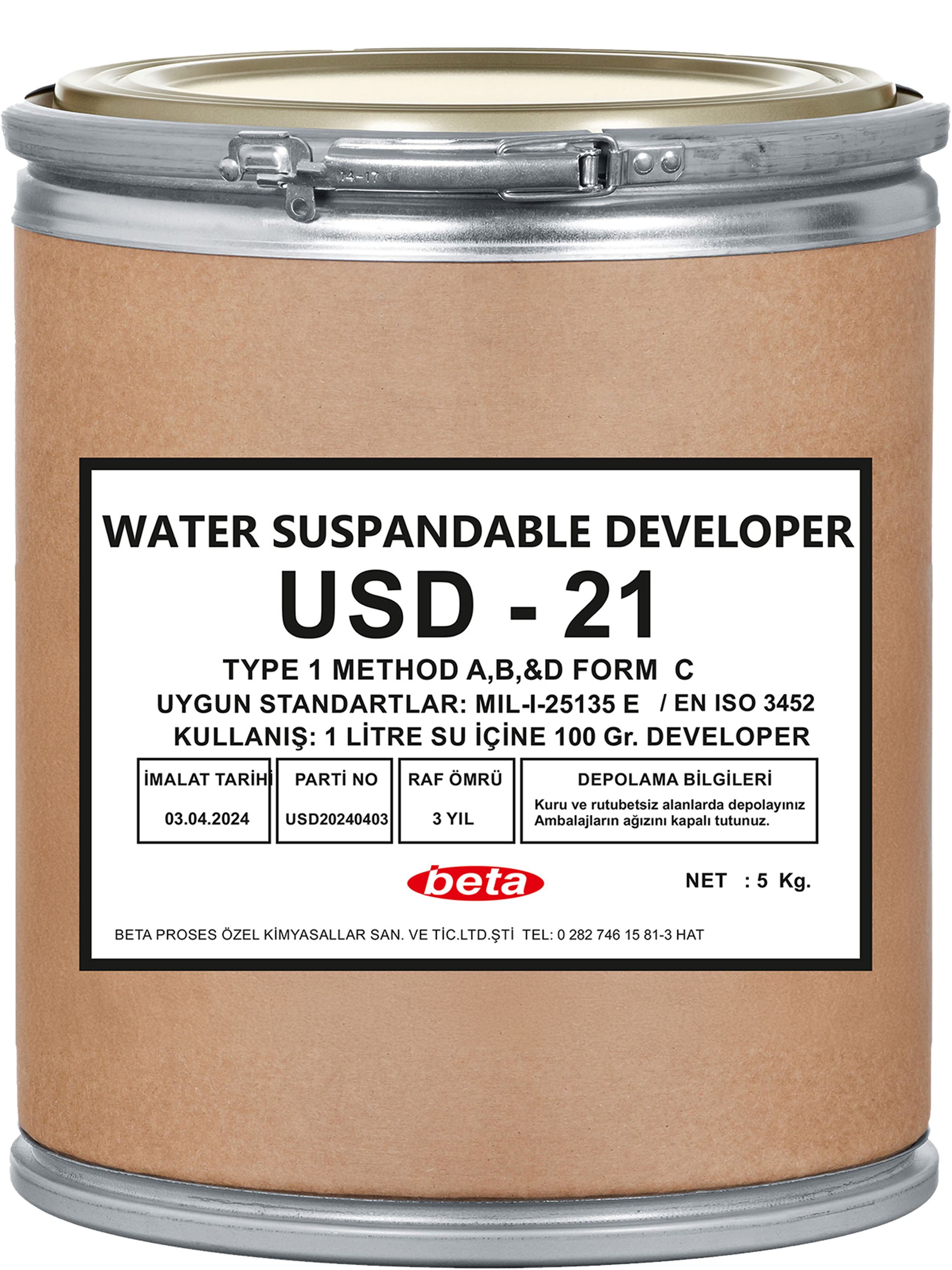 The suspension is prepared by adding 5-10% USD-21 to water.
