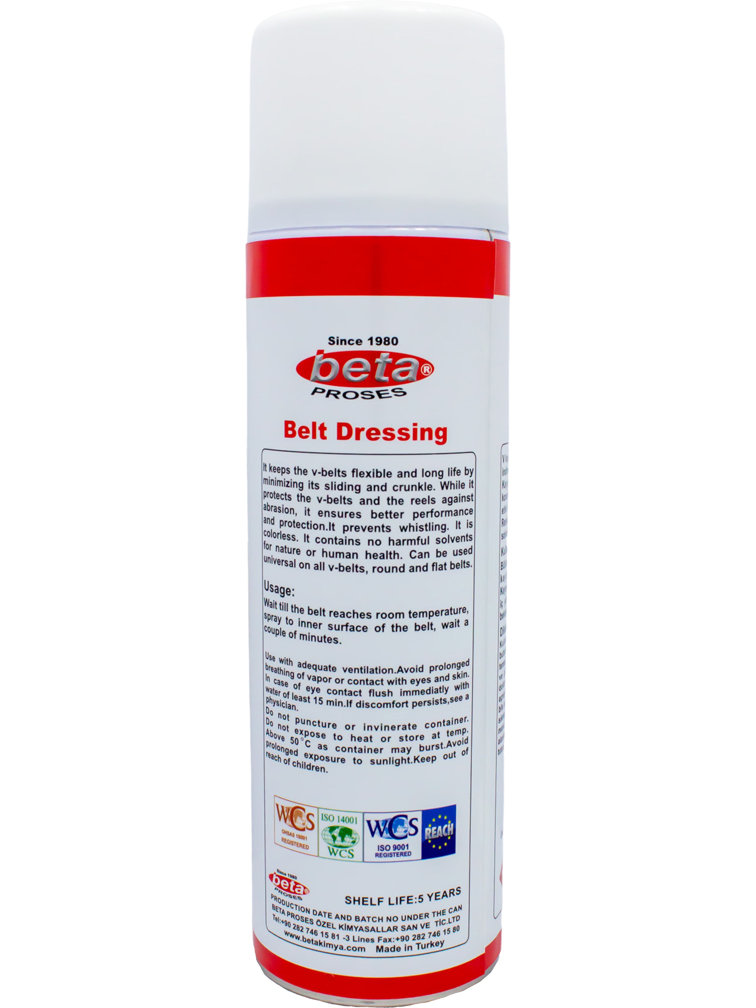 V kayışının gıcırdamasını ve kaymasını en aza indirerek esnek tutar ve ömrünü uzatır. Kayışları ve makaraları aşınmaya karşı korurken verim ve çekme gücünü arttırıp etkin koruma sağlar. Ötmesini engeller. Renksizdir. Doğaya ve insan sağlığına zararlı solventler içermez. Bütün V kayışlarında, yuvarlak ve yassı kayışlarda evrensel olarak kullanılabilir.