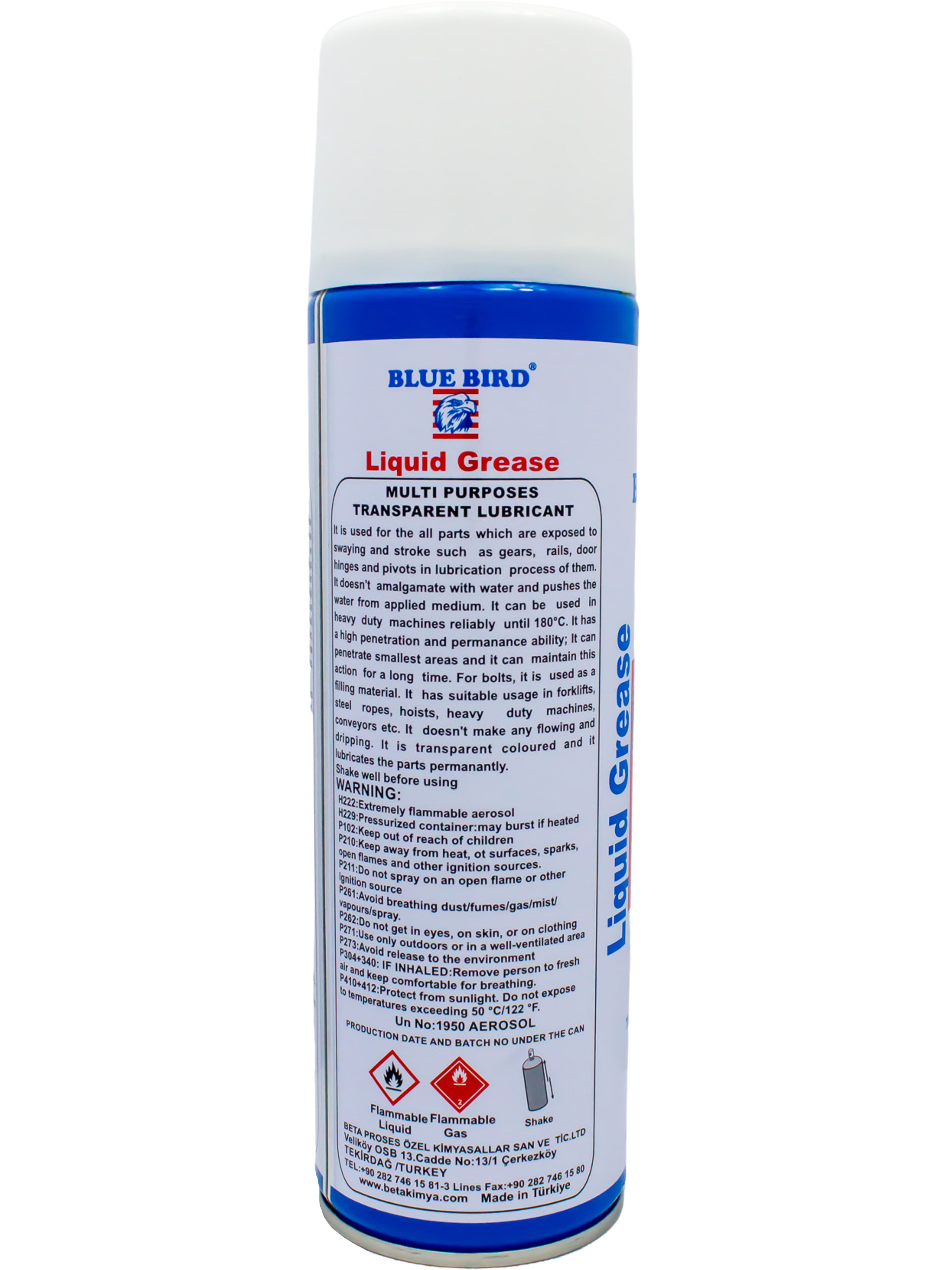 Kapı menteşe ve pimlerinde, dişlilerde, raylarda, darbe ve sallantıya maruz kalan tüm parçaların yağlanmasında kullanılır. Su ile birleşmez ve ortamdan suyu iter. Ağır yük altında yüksek sıcaklığa (180°C) dayanıklı olarak çalışabilen bir üründür. Yüksek nüfuz etme ve tutunabilme özelliği ile en küçük alanlara kadar sızar ve bu özelliğini çok uzun süre korur. Civatalar için dolgu malzemesi olarak da kullanılır. Forkliftler, vinçler, çelik halatlar, ağır iş makineleri, konveyörler gibi birçok yerde kullanıma uygundur. Akma ve damlama yapmaz, şeffaf renklidir ve kalıcı yağlama sağlar. Kanserojen maddeler içermez.