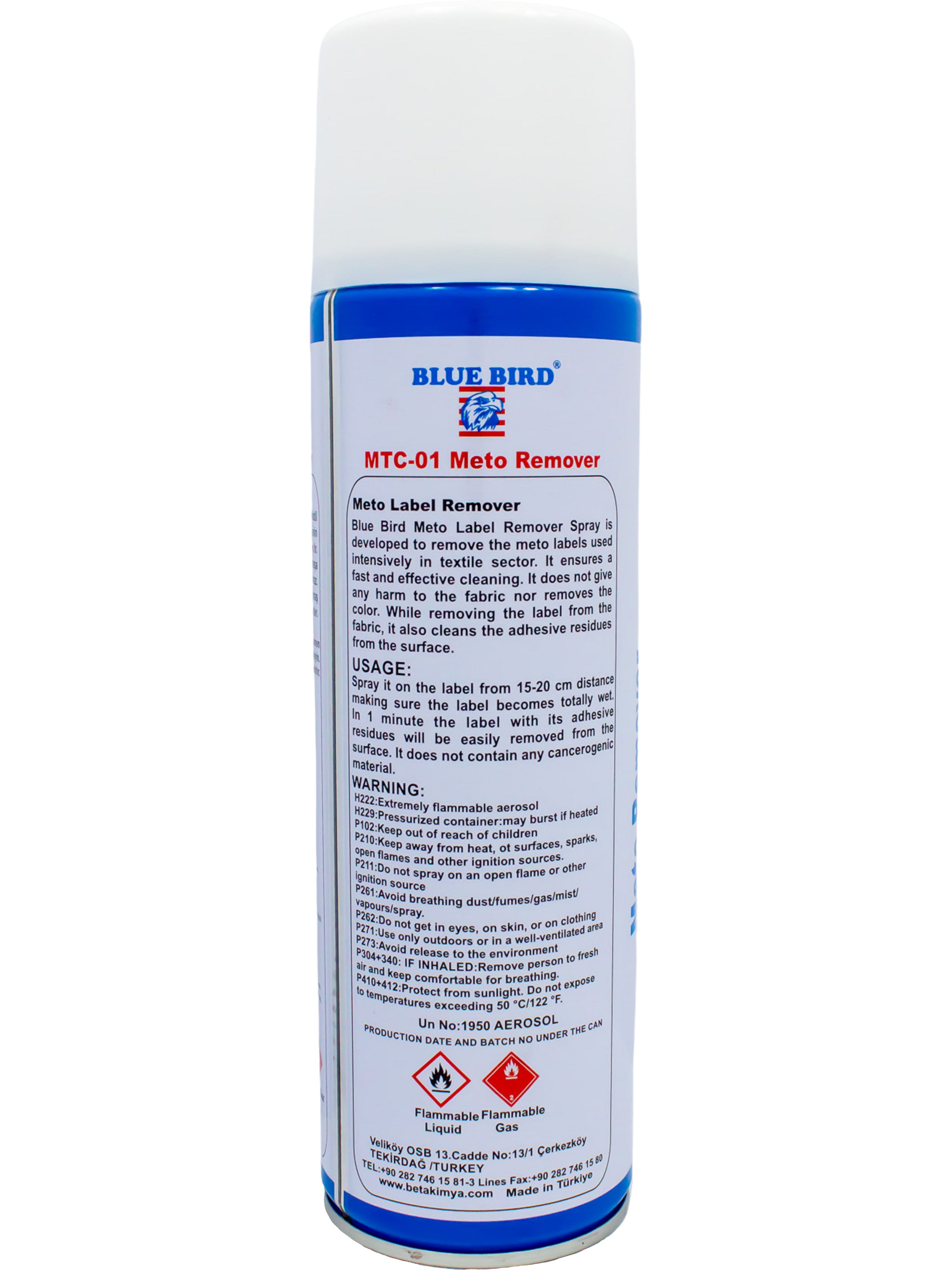 Konfeksiyon ve atölyeler için üretilmiş meto etiket çıkarıcıdır. İnsan sağlığına ve ozona zararlı kimyasallar içermez. Meto etiketini rahat ve kalıntısız bir şekilde çıkartılması için özel formüle edilmiştir. Daha önce çıkarılmış etiketlerin yapıştırıcı kalıntılarını hızlı ve etkili bir şekilde temizler. Zaman ve ekonomi sağlar. Endüstriyel ekonomik ambalajda üretilmiştir.